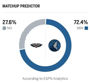 赛前,美媒ESPN预测本场比赛,鹈鹕胜率27.6%,森林狼胜率72.4%。